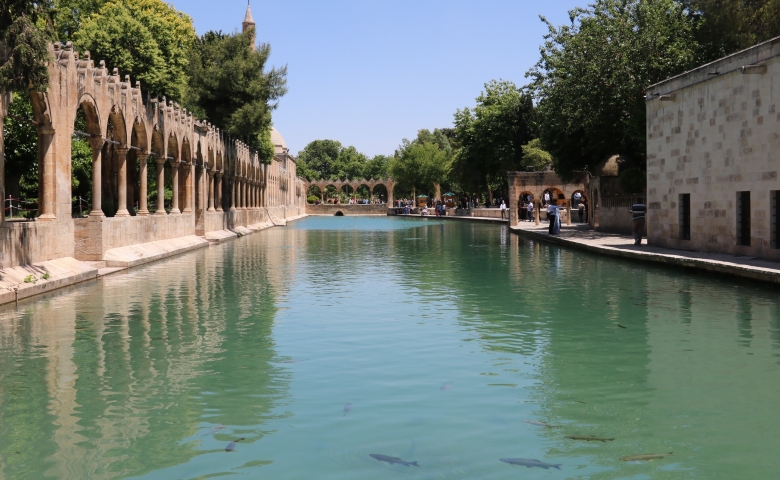 Balıklıgöl, 150 metre uzunluğunda ve 30 metre genişliğindedir. Derinliği 3-5 metre civarındadır. İçinde efsanelere konu olan sazan türü balıklar bulunmaktadır. Bu balıklara halk tarafından saygı gösterilir ve yenilmez. Rivayete göre Hz. İbrahim ateşe atıldıktan sonra, bir mucize gerçekleşir ve etraf güllük gülistanlık olur. Bu mucizenin gerçekleştiği mekânın Balıklıgöl ve çevresi olduğuna inanılır. Dini bayramlar da ile Mevlit ve Kandil gecelerinde en yüksek ziyaretçi sayısına ulaşır.Balıklıgöl Platosunda Hz. İbrahim'in doğduğu mağara da bulunmaktadır. Üç semavi dinin atası olarak kabul edilen Hz.İbrahim'in doğduğu mağaranın ziyaretçisi hiç eksik olmaz. Her dinden her ülkeden ve her şehirden ziyaretçinin yılın her mevsiminde bu mağarayı ziyaret eder. Hz.İbrahim'in doğduğu mağaranın hemen yanında yaşadığı dönemin din âlimi olan Beddiüzaman Said Nursi'nin vefat ettikten sonra ilk defnedildiği mezarı da bulunmaktadır. Balıklıgöl Şanlıurfa turizminin çekim alanıdır. Halil-ür Rahman Gölü'nün hemen güneyinde, Urfa Kalesinin önünde yer almakta olup, 150 m2 alanı bulunan bir göldür. Rivayetlere göre, Hz İbrahim ateşe atıldıktan sonra, Nemrut'un kızı Zeliha da Hz. İbrahim'i çok sevdiğinden ve ona inandığından ateşe atılmasına dayanamaz, o da kendisini ateşe atar. Zeliha'nın düştüğü yer de bir göle dönüşür.