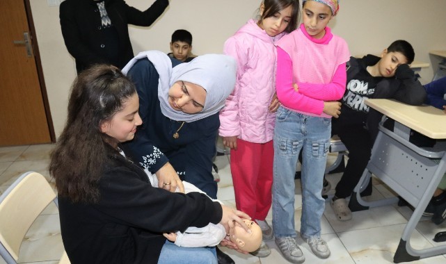 Şanlıurfa Büyükşehir Belediyesi Zübeyde Demirkol Gençlik Merkezindeki kursiyer çocuklara, ‘’Ben Her Yerde Varım’’ Projesi kapsamında uygulamalı olarak hayat kurtaran Heimlich manevrası anlatıldı.
