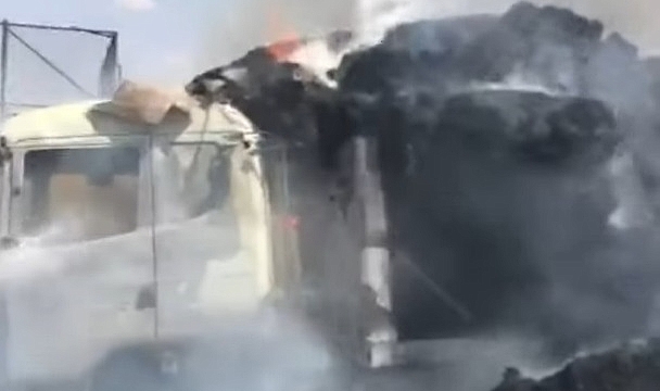 Şanlıurfa'nın Eyyübiye İlçesine Bağlı Yardımcı Köyünde Saman Yüklü Tır Yangını Şanılurfa İtfaiye ekiplerince Söndürüldü