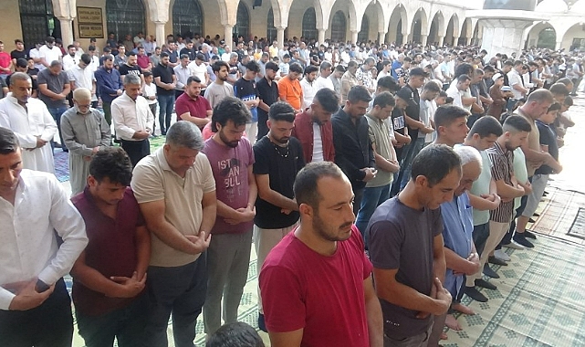 Şanlıurfa’da Kurban Bayramı sabahı yüzlerce kişi namaz kılmak için Hazreti İbrahim’in ateşe atıldığına inanılan Balıklıgöl yerleşkesindeki camilere akın etti. Abdest alan vatandaşlar, camide yer kalmayınca avluda namaz kıldı. Omuz omuza saf tutan yüzlerce vatandaş, namaz sonrası ise dua etti.