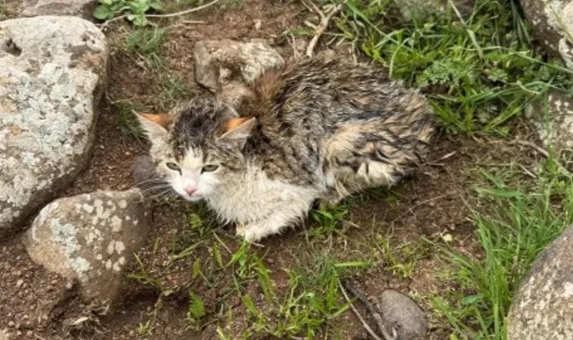Kurtarılan kedi, sıcak bir ortama alındı ve beslenmesi için süt verildi.